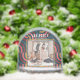 Este globo de nieve retro, maximalista, kitsch y moderno "Feliz Navidad" Navidades navideños presenta un fondo azul marino con patrones geométricos. Personalízalo para tus necesidades. Puedes encontrar productos coincidentes en mi tienda.
