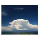 Foto de una nube blanca esponjosa sobre un gran río. El cielo es muy azul.