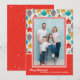 Vintage adornos de árbol de Navidad en rojo, oro, púrpura, turquesa y menta, y tu saludo y nombres moda con letras alrededor de tu foto favorita. Seleccione Matte para papel más pesado y alta definición para obtener la mejor calidad de impresión. ***Tarjeta HORIZONTAL hecha por usted en nuestra tienda.