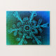 Una de mis fotos originales de copos de nieve en un fondo azul y verde texturado grava este rompecabezas, ¡haciéndolo un entretenimiento genial!