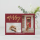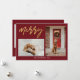 Tarjeta de felicitación de Navidad moderna con foto de perro. Esta hermosa tarjeta plana presenta un texto moderno y elegante, con un toque de acuarela dorada y un fondo de color vino burdeos sólido. Cambie la foto del modelo por la suya. Por favor, contacte con Antique Chandelier si desea realizar algún cambio en el diseño de esta tarjeta de Navidad.