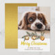 Una linda tarjeta de vacaciones de personalizados alegres Navidades de oro para mamá y papá del perro. Relieve metalizado dorado en la parte posterior de la tarjeta. Puede personalizarla con la foto y el nombre de su perro.