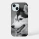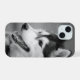 Estuche para iPhone personalizable con una foto en blanco y negro de un perro husky. Puedes reemplazar la foto por una foto de tu mascota.