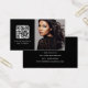 Tarjetas de visita para fotos personalizado modernas y negras con tu foto y código QR en la parte delantera. campos de plantilla de personalizable para nombre, título, información de contacto en la parte posterior. Puede cambiar los colores de fondo y fuente, mover y cambiar el tamaño de los elementos con la herramienta de diseño. Síguenos en Facebook: @business stalery para más productos, noticias, ventas y más.