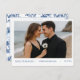 ¿Buscando una manera elegante de anunciar a su boda? Esta tarjeta postal de personalizable permite cargar tu foto de compromiso favorita mientras mantiene el diseño pulido y moderno. Con una elegante colocación de tipo que se adapta a la ropa más oscura y a los ambientes de la playa, el reverso muestra un atemporal patrón azul chinoiserie para un acabado clásico. Perfecto para los bodas costeros, las parejas modernas o todo aquel que desee un toque refinado y personal.