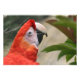 Foto de cierre de un caballa escarlata posando para la cámara. El loro está mostrando sus hermosas plumas rojas en esta foto de un pájaro tropical de Costa Rica. Hay algunas hojas de árbol en el fondo de la foto. Puedes tener esta divertida imagen de mackaw impresa en muchas fotos diferentes. Cualquier amante de las aves disfrutaría de esta foto sincera de la vida silvestre de un caballa escarlata en su hábitat natural.