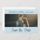 Foto manuscrita Minimalista Guardar la invitación de fecha es creada por szdesign. Esta invitación Save the date, se basa en el diseño minimalista con foto y contraste entre los colores blanco y azul. Si te gusta la invitación simple enriquecida con el interesante tipo de letra y el suave color, esto podría ser perfecto para ti.
