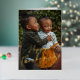 Tarjeta navideña de Relieve metalizado guionado con foto feliz feliz con caligrafía cepillada con letras tipo script. En blanco para tu mensaje manuscrito.