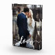 Crea un dulce toque de tu boda, luna de miel o momento especial con este moderno bloque de fotos acrílicas independiente. Añade tu foto favorita vertical / orientada a retratos con "amor" colocada en el estilo blanco manuscrito con letras modernas de caligrafía.