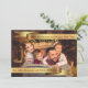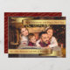 Un moderno diseño de tarjetas para Navidades de fotos limpios con fotos familiares llenando la cara de la tarjeta y bandas de oro sosteniendo tu texto en la parte superior e inferior.