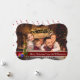 Un moderno diseño de tarjetas de Navidades de fotografía con una foto familiar llenando la cara de la tarjeta. Decoración divertida de elfo con banda de texto rojo oscuro para tus palabras.