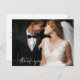 Expresar su sincera gratitud con estilo con nuestras tarjetas postales de fotos de agradecimiento a su Boda. Estas postales elegantes y personales son la manera perfecta de agradecer a sus invitados su amor y apoyo en su día especial, ofreciendo un querido conservador que pueden valorar. Resalta un momento preciado de su día de boda en el frente para crear un agradecimiento significativo y personal. Mucho espacio en la parte de atrás para un mensaje sincero que exprese su gratitud. Fácil de enviar por correo, asegurándose de que sus invitados reciban su tarjeta de agradecimiento con facilidad.