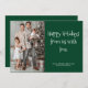 La Navidad es la temporada de la alegría, de dar regalos y de familias unidas. Envía deseos de Navidad a tu familia y amigos con esta Tarjeta de Felices Fiestas verde con Foto de Familia Minimalista. Una combinación de tipografía de moda con 1 foto en la parte delantera junto con tus nombres. También puedes poner tu mensaje en la parte trasera de la tarjeta.