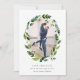 Elegante botánico guardar las fechas incluye una foto favorita de compromiso rodeada por una corona oval de frondosos follajes verdes y flores blancas. Personalice con sus nombres, fecha de boda y ubicación, con información adicional como el sitio web del boda en la parte posterior.