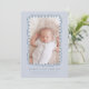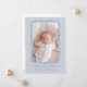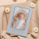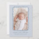Tarjeta de anuncio de natalidad caprichosa y dulce con marco de foto dibujado a mano en la línea azul chillón.
