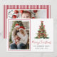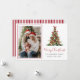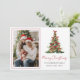 Tarjeta de vacaciones con foto del árbol de Navidad con lazo rojo acuarela
