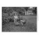 Esta es una fotografía original escaneada a alta resolución de una placa de vidrio negativa. ¡Una niña adorable se levanta en el jardín con un gallo atado a un carro! Absolutamente precioso. Esta es una imagen original y amable. Una tarjeta perfecta para tu fiesta del jardín. Personalizar el interior con el texto que quieras. Así de fácil. Disfruta.