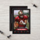 ¡Crea una tarjeta de intercambio única y memorable para conmemorar a un destacado futbolista! Este diseño de personalizable presenta un elegante esquema de color rojo y negro con un fondo negro texturizado, lo que lo hace perfecto para las estadísticas y la imagen de cualquier jugador.