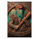 Crvena Zvezda ultra with a baseball bat. This bold embossed metal print features a tough tattooed hooligan in a cap and bandana holding a bat, with the iconic 'DELIJE SEVER 1989' banner below. Rustic distressed copper and teal finish gives it a raw, industrial, ultra vibe. Perfect gift for passionate Red Star Belgrade fans.