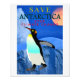 Este poster presenta un fresco diseño temático sobre el calentamiento global Salven la Antártida Alto el cambio climático con luna llena de la Antártida, pingüino emperador y un paisaje helado de glaciares.
