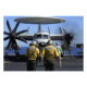 Los directores de la cabina de vuelo observan como pilotos de una puesta en marcha E-2C Hawkeye sus motores con aeronaves.