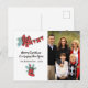 Tarjeta postal de foto de Navidad con un divertido oso leñador y banderines de cuadros de búfalo y elementos personalizables con la foto de tu familia.