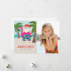 Esta adorable tarjeta de Navidad presenta un Santa tropical dibujado a mano, que lleva pantalones cortos de baño coloridos y un flotador de flamenco fucsia brillante. Otros detalles divertidos incluyen palmeras, el océano y una playa de arena. Fácil de personalizar con tu propia foto y texto. Envía sonrisas esta temporada navideña o para Navidad en julio. La parte posterior de la tarjeta es blanca con pequeñas motas de textura de "arena".