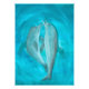 Dos delfines jugando salvajes y libres en el océano. Pintura acuarela sobre papel. Transiciones de color azul suave a menta y agua gris. Los delfines representan agua y elementos aéreos, buena suerte, fortuna y cosas positivas. Salven nuestros mares y océanos.