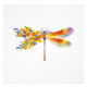 Flora de dragón floral pintada de forma artística en naranja y púrpura contrastante con amapola californiana amarilla, brillante, floreciente y flores silvestres azules sobre fondo blanco.