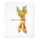 Flora de dragón floral pintada de forma artística en naranja y púrpura contrastante con amapola californiana amarilla, brillante, floreciente y flores silvestres azules sobre fondo blanco.