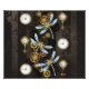 Marcos antiguos y llaves con engranajes de oro y de latón, decorados con libélulas mecánicas de vapor punk sobre fondo marrón, rayado.