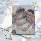 Personalizado con tu elección de foto. Flores sutiles azules y marfil acentúan esta encantadora tarjeta "Save the Date". Agregue sus nombres y fecha al personalizar de este bonito con estilo "Save the Date". Sencillo pero elegante.