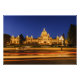 El edificio del Parlamento de Columbia Británica en Victoria, en la isla de Vancouver, se iluminó por la noche. Fotografía de larga exposición. Tanto el edificio como la estatua de latón de la Reina Victoria, de 4 metros de altura, dan al puerto interior.