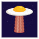 Ilustracion de personalizado vectorial de un delicioso OVNI de huevo frito al sol con una deliciosa barra de tractor de rodaja de tocino. Palabras clave: huevo, tocino, desayuno, OVNI, alienígena, soleado, lateral, personalizado, espacio, extraterrestre, comida, lindo, yolk, sci, ciencia, ficción, marciano, humor, carne, cerdo, secuestro