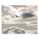 En un día ventoso, un majestuoso águila calva se eleva, respaldado por dramáticos cielos nublados.