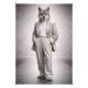 A refined anthropomorphic fox dressed in a light modern suit, captured in a minimalist runway-inspired setting. This artwork combines elegance, quiet intelligence, and contemporary style, making it a sophisticated statement piece for modern interiors and office spaces.