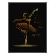 Elegante Línea de Arte de Ballerina - Bailo por mí mismo. Elegante ilustracion de arte en línea dorada de una bailarina de bailarina golpeando una posición majestuosa, complementado con la frase edificante "Yo bailo por mí mismo" en un minimalista fondo negro.