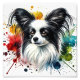 Este impresionante estampado acuático refleja la delicada belleza y personalidad de un papilón blanco y negro, ilustrado con un detalle excepcional y una suave piel que fluye. Las orejas y los ojos expresivos de tipo mariposa se ven realzados por salpicaduras abstractas dinámicas en rojo, naranja, amarillo mostaza, azul brillante y verde profundo, lo que crea una composición vibrante y cautivadora. Perfecto para los amantes del Papillon, los amantes del perro y los que aprecian los retratos artísticos mascotas, esta impresión de alta calidad añade elegancia y encanto a cualquier decoración de casa o de oficina.