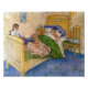 Imagen vintage de la vida familiar sueca por el artista Carl Larsson. Niño enfermo en la cama con su hermana leyendo una historia.