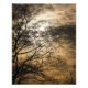 Un árbol de invierno se silueta contra una puesta de sol nublada creando una escena mística.