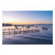 escenografía matutina del lago con pilotes y botes vistos desde malecón en chapala jalisco méxico