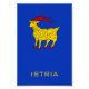 Eleva tu hogar o despacho con esta representación artística premium del Escudo de Istria. Detallada meticulosamente para mostrar la gracia muscular de la cabra dorada, esta impresión refleja las profundas capas históricas de la península —desde la Istria romana hasta la región croata moderna. El borde ornamentado incluye texturas sutiles de piedra istriana y flora mediterránea. Una elección distinguida como regalo para una familia con raíces istrianas o como punto focal en una galería de temática viajera.