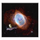 El velo ya no se estira. Durante milenios, la Nebulosa del Anillo Sur, una mortaja fantasmal en la constelación Vela, ha manchado a los astrónomos con indicios de sus secretos. Ahora, la mirada infrarroja del telescopio James Webb perfora el velo polvoriento, revelando una danza hipnotizante de muerte y renacimiento. Una estrella moribunda, cubierta de polvo, arroja un resplandor etéreo sobre las capas expulsadas de gas y polvo, esculpidas para siempre en anillos complejos. Esta impresionante imagen es un testimonio de la capacidad del universo para forjar la belleza de las cenizas de las estrellas moribundas. - Este archivo es de dominio público en los Estados Unidos porque fue creado únicamente por la NASA.