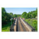 Una vista elevada de la estación de tren de Deighton cerca de Huddersfield, West Yorkshire, en un día brillante y soleado. Esta escena pacífica captura la perspectiva amplia de las vías del tren que se curvan en la distancia, enmarcadas por árboles verdes y exuberantes y un cielo azul claro. Un diseño perfecto para entusiastas de los trenes, pasajeros y cualquiera que ame la belleza serena del campo británico. Esta imagen se puede editar y transferir a múltiples productos de su elección.