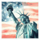 Estatua de la Libertad cerrada con acuarela de fondo de la bandera de los Estados Unidos