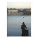 Estatua en el puente Carlos (más Karlův), con el río Vltava en el fondo. Praga, República Checa