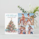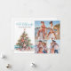 Tarjeta de Navidad familiar de Mele Kalikimaka en la playa. Envía vibras navideñas tropicales con esta tarjeta horizontal con tema Mele Kalikimaka, que presenta la frase hawaiana en la parte superior y el nombre de tu familia justo debajo. Este diseño festivo muestra un árbol de Navidad único de conchas marinas y estrellas de mar junto con tres espacios para las fotos de tu familia. Perfecta para aquellos que aman la playa o viven en lugares tropicales como Hawái, Florida o las Bahamas, el árbol de acuarela está decorado con conchas marinas, estrellas de mar y una estrella de mar en la parte superior, descansando sobre una base de arena con toques de olas del océano azul teñido. El diseño casual pero elegante combina tipografía simple y manuscrita, lo que lo convierte en una forma encantadora de celebrar la temporada. ¡Disponible como tarjeta impresa o descarga digital para compartir de manera conveniente o