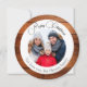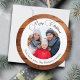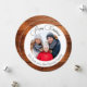Tarjeta de Navidad con foto familiar y patrón de copos de nieve en madera. Una foto familiar personalizada con un fondo de madera rústica. Agrega tu foto y personaliza el texto en la tarjeta.