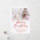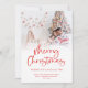 Foto Familiar Moderna Sobrepuesta En Rojo Escribiendo Feliz Navidad. Disponible digitalmente e impreso. Un juego de guiones para Feliz Navidad y el resto del texto es fácil de personalizar. Reemplace la foto de ejemplo con su propio favorito.