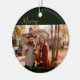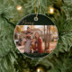 Celebra la temporada de fiestas con este elegante adorno de Navidad con fotos familiares. Con un moderno fondo verde oscuro con una elegante caligrafía de escritura que lee Feliz Navidad, este diseño resalta tu foto familiar favorita en el centro. Personaliza con tu apellido y año abajo, es la manera perfecta de difundir el amor, la alegría y los saludos festivos a la familia y amigos. Personalizar el mensaje de la parte posterior y agrega nombres de familia. Haz una tradición de tener una nueva familia de fotos cada año.